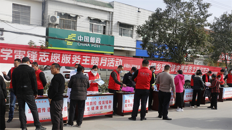 3月4日,埇橋區(qū)永鎮(zhèn)鄉(xiāng)開(kāi)展“學(xué)雷鋒志愿服務(wù)展示交流活動(dòng)”,活動(dòng)現(xiàn)場(chǎng)由永鎮(zhèn)鄉(xiāng)工會(huì)聯(lián)合會(huì)、派出所、財(cái)政所、城建所、衛(wèi)生院、社保所、婦聯(lián)、四送一服辦公室等16個(gè)單位的志愿者組成學(xué)雷鋒志愿服務(wù)隊(duì),在永鎮(zhèn)街旁開(kāi)展了“喜迎二十大”理論宣講、民生政策宣傳、惠殘政策宣傳、法律咨詢(xún)服務(wù)、就業(yè)招聘咨詢(xún)、掃黃打非、移風(fēng)易俗宣傳、衛(wèi)生健康服務(wù)等志愿服務(wù)項(xiàng)目,把理論政策送到群眾面前,將惠民服務(wù)送到群眾手中,把精神文明帶到群眾身旁。