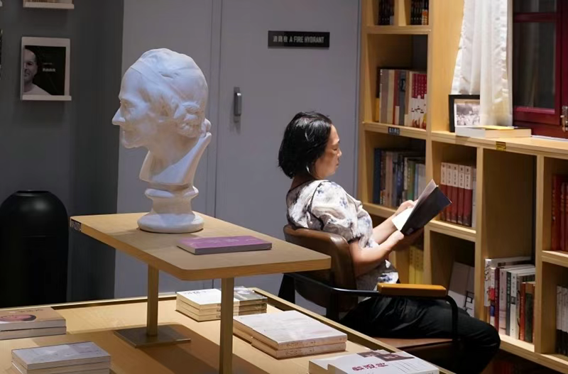 2025年9月9日夜晚,一位讀者正在安慶前言后記書店勸業(yè)場店看書。(安慶市新聞傳媒中心汪飛龍 攝)