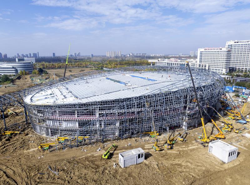11月13日,記者航拍正在施工中的宿州奧體中心游泳館。目前,該館主體工程已全部完成,與奧體中心主體建筑連為一體。作為承擔(dān)省十六運(yùn)相關(guān)大型賽事的主場(chǎng)館,該項(xiàng)目建成后,將全面提升我市體育賽事承辦能力,完善城市功能,拉動(dòng)區(qū)域發(fā)展,為市民提供優(yōu)質(zhì)的體育健身場(chǎng)所。(拂曉報(bào) 記者 蘇洋 攝)