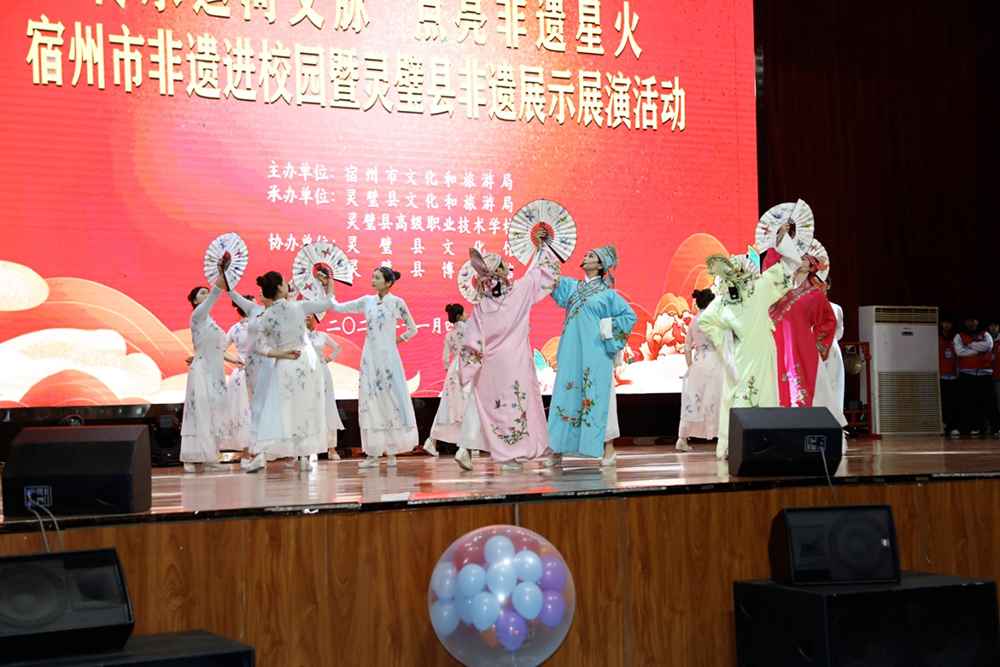 11月4日,“傳承運(yùn)河文脈,點(diǎn)亮非遺星火”宿州市非遺進(jìn)校園暨靈璧縣非遺展示展演活動(dòng),在靈璧縣高級(jí)職業(yè)技術(shù)學(xué)校拉開帷幕。