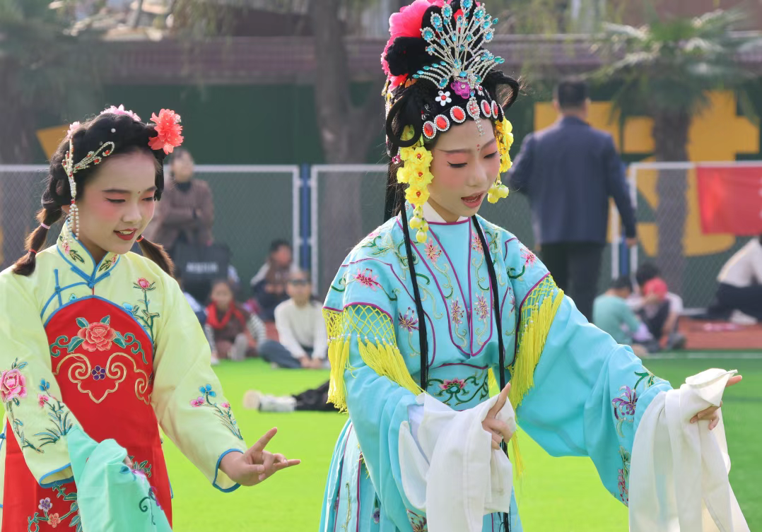 近日,宿州市泗縣大路口中心校運(yùn)動(dòng)會(huì)開(kāi)幕式上,一曲原創(chuàng)泗州戲《家校譜華章 共赴中國(guó)夢(mèng)》驚艷亮相。來(lái)自泗城一小的“小戲骨”們身著精致戲服,唱腔婉轉(zhuǎn)悠揚(yáng)、身段韻味十足,將國(guó)家級(jí)非遺的獨(dú)特魅力展現(xiàn)得淋漓盡致,為充滿(mǎn)活力的運(yùn)動(dòng)會(huì)注入了濃郁的傳統(tǒng)文化氣息,贏(yíng)得現(xiàn)場(chǎng)師生陣陣喝彩。