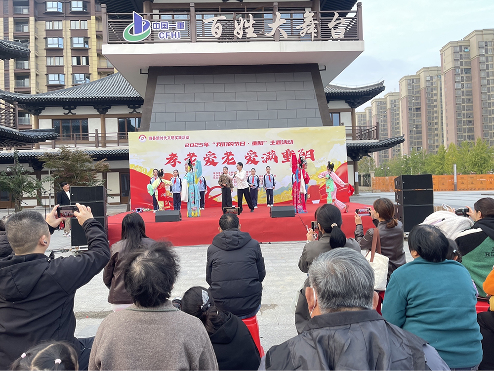 泗城一小學(xué)生在縣重陽(yáng)節(jié)主題活動(dòng)中表演泗州戲。朱葉 攝