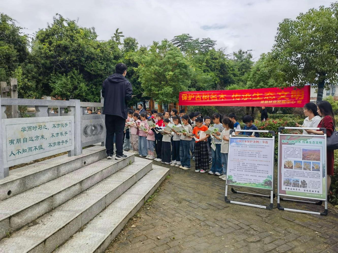 活動(dòng)中,市林業(yè)局的專(zhuān)家通過(guò)《古樹(shù)名木保護(hù)條例》講解、古樹(shù)名木知識(shí)問(wèn)答、古樹(shù)名木保護(hù)倡議等方式,向師生們介紹了古樹(shù)名木的歷史價(jià)值、生態(tài)功能及保護(hù)現(xiàn)狀。開(kāi)展“小手拉大手,保護(hù)古樹(shù)名木”活動(dòng),普及古樹(shù)名木保護(hù)的科學(xué)知識(shí),激發(fā)并增強(qiáng)了廣大師生保護(hù)古樹(shù)名木、敬畏自然的濃厚意識(shí)。學(xué)生們還觀(guān)看了《守護(hù)綠色活化石》科普短片,直觀(guān)感受古樹(shù)與生態(tài)環(huán)境的緊密聯(lián)系。