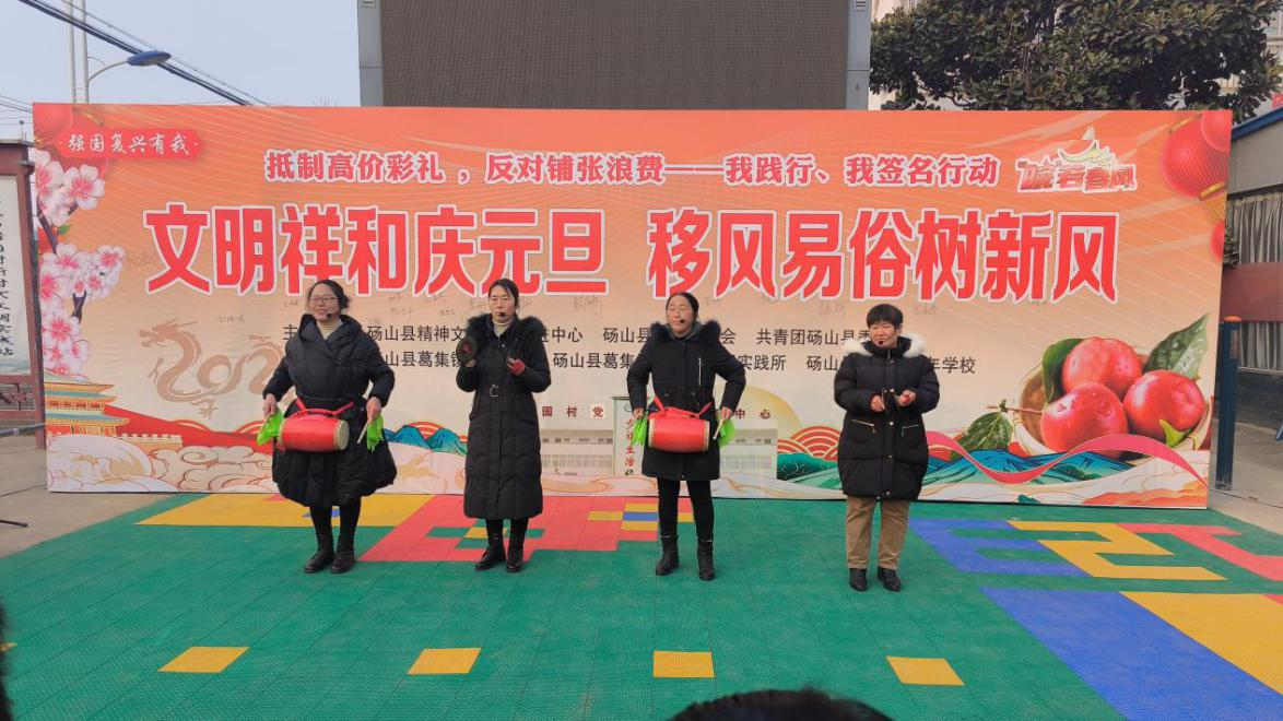 葛集鎮(zhèn)在白臘園村舉辦“文明祥和慶元旦 移風(fēng)易俗樹新風(fēng)”活動,表演“移風(fēng)易俗三句半”節(jié)目 碭山縣文明辦供圖