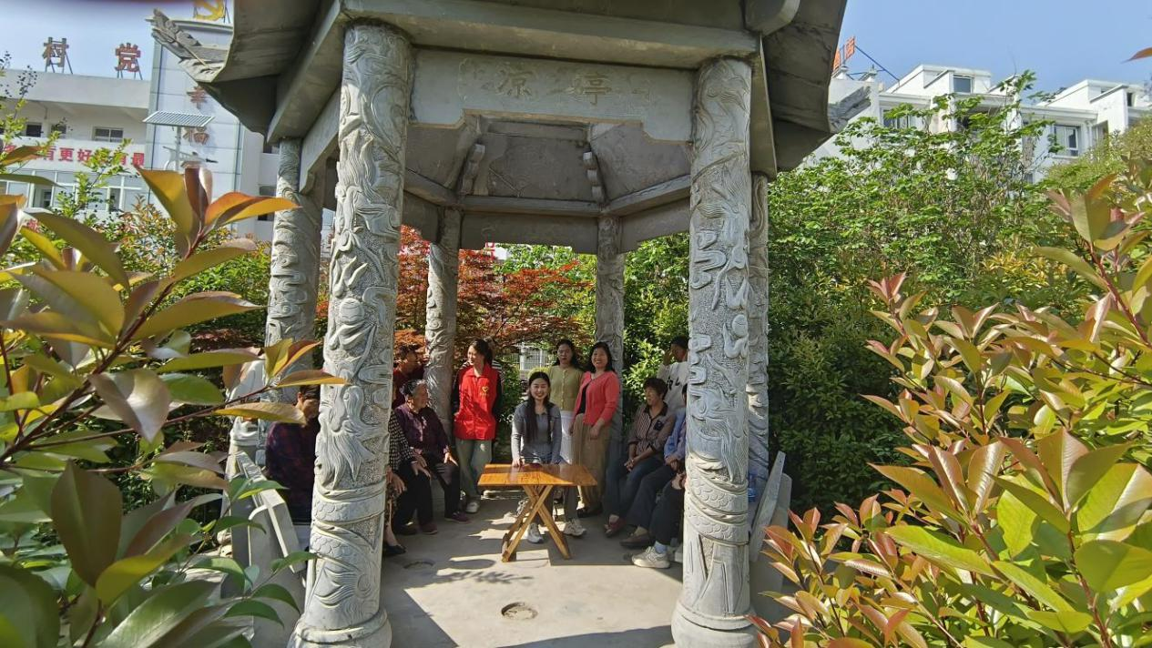葛集鎮(zhèn)白臘園村村民王梅花在石亭下分享移風(fēng)易俗、弘揚(yáng)新風(fēng)故事 碭山縣文明辦供圖