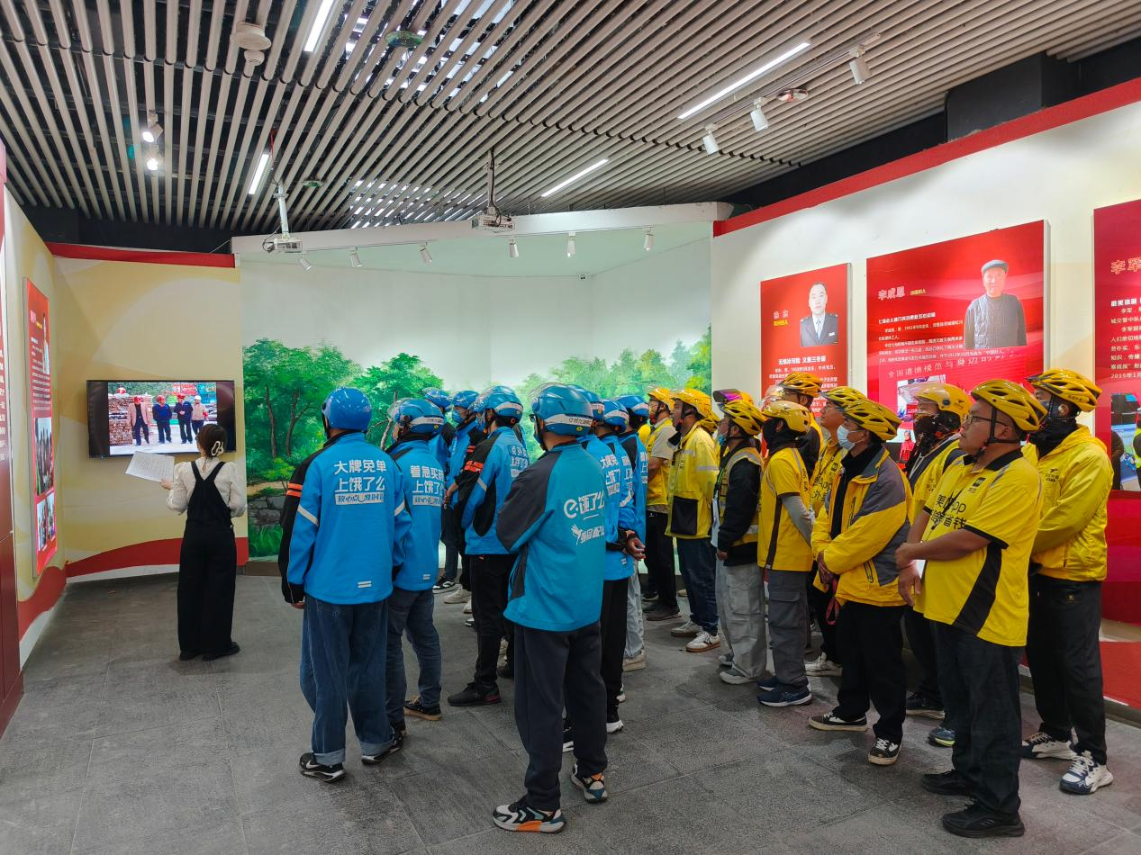 在國慶來臨之際,靈璧好人館迎來了一批特殊的參觀者——日夜穿梭在城市街巷的外賣騎手們。