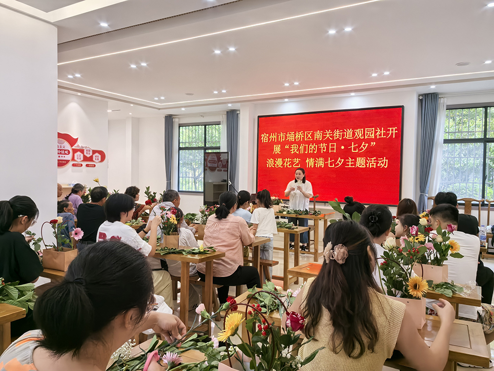 8月28日,埇橋區(qū)南關(guān)街道觀園社區(qū)開展“我們的節(jié)日·七夕---浪漫花藝、情滿七夕”主題活動?;顒蝇F(xiàn)場氣氛溫馨又熱烈,居民們合作插花、分享愛情故事,近距離感受了七夕傳統(tǒng)節(jié)日的文化魅力,更推動文明新風(fēng)、優(yōu)良家風(fēng)理念在社區(qū)落地生根。