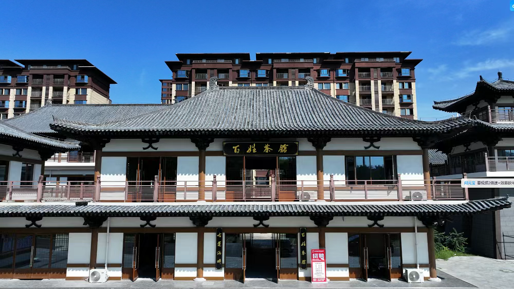 該項目堅持將茶館本身作為一件展品來打造,使其成為集中展示泗縣地方文化與運河風情的城市記憶博物館。遵循隋風唐韻,青石基座、褐色立柱、飛檐翹角與古運河景致渾然一體。步入室內,精心營造的質樸氛圍撲面而來:本土書畫作品懸于土色墻壁,老式八仙桌、雕花門窗與陶瓷茶具承載著歲月的溫度,處處流露著泗縣獨特的市井生活氣息。特別設置的“運河記憶墻”,陳列著從百姓家中征集的老照片,定格了縣城變遷與百姓生活的煙火記憶,通過老茶具、舊船模等實物展陳,生動串聯起運河的流淌故事,讓居民和游客在品茗之余,能直觀地“閱讀”歷史,找到情感歸屬,使茶館成為凝聚鄉(xiāng)愁、展現地方魅力的文化會客廳。