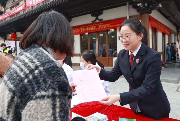 檢察院志愿者向現(xiàn)場群眾宣講未成年人保護內(nèi)容。吳天元攝