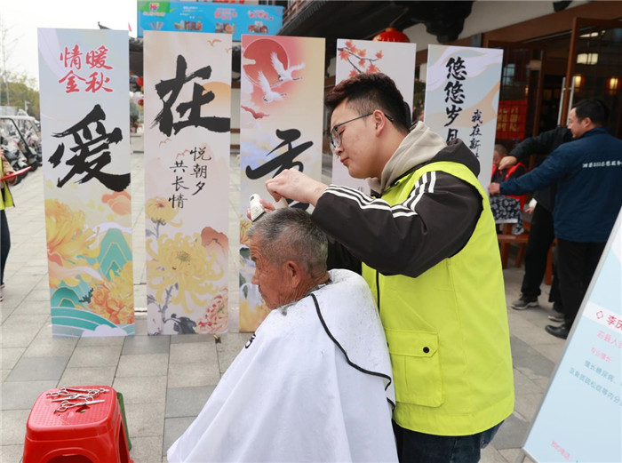 最富生活氣息的,永遠是便民服務(wù)區(qū)。在理發(fā)攤位前,義工協(xié)會志愿者們手法嫻熟,精心為老人們修剪出清爽利落的發(fā)型,“剪完頭發(fā),感覺年輕了十歲!”剛理完發(fā)的周大爺顯得精神煥發(fā),他照著鏡子,滿意地直咧嘴。