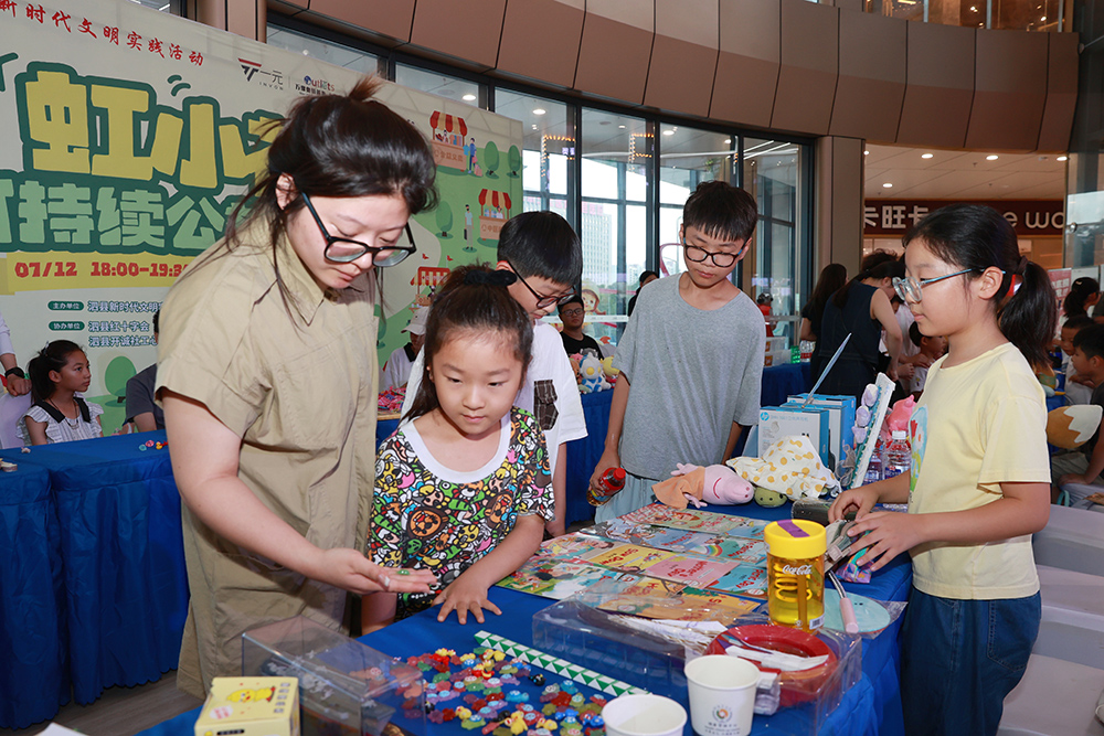 活動(dòng)現(xiàn)場(chǎng),孩子們?cè)诩议L(zhǎng)的陪同下化身“小店主”和“小顧客”,在各自攤位前熱情介紹自己家中帶來(lái)的玩具、書(shū)籍、文具等閑置物品,相互間用舊物去交換自己心儀的物品。通過(guò)置換讓舊物煥新,既減少資源浪費(fèi),實(shí)現(xiàn)資源共享,也讓孩子們?cè)趯?shí)踐中體會(huì)分享的快樂(lè),促進(jìn)人際關(guān)系。居民許先生帶著孩子置換到2本科普類(lèi)書(shū)籍后表示:“今天的活動(dòng)真是太棒了,既為舊玩具找到了新家,又淘到了孩子想要的書(shū),還做了公益,一舉數(shù)得!”