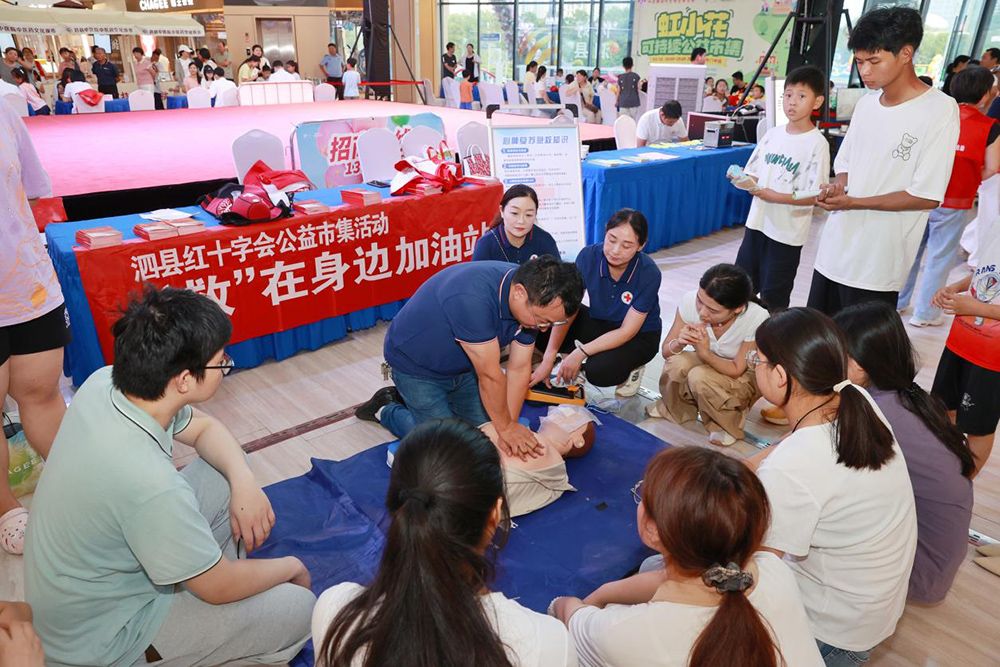 7月12日,泗縣新時(shí)代文明實(shí)踐中心攜手衛(wèi)健委、紅十字會(huì)、總工會(huì)等單位,在萬(wàn)像奧特萊斯·大有界商場(chǎng)舉辦“虹小花”可持續(xù)公益市集活動(dòng)?;顒?dòng)通過(guò)以物易物市場(chǎng)交流、公益義診、主題微宣講等形式,將便民暖心服務(wù)送到群眾身邊,搭建了商業(yè)體服務(wù)群眾的互動(dòng)平臺(tái),吸引周邊群眾參加。